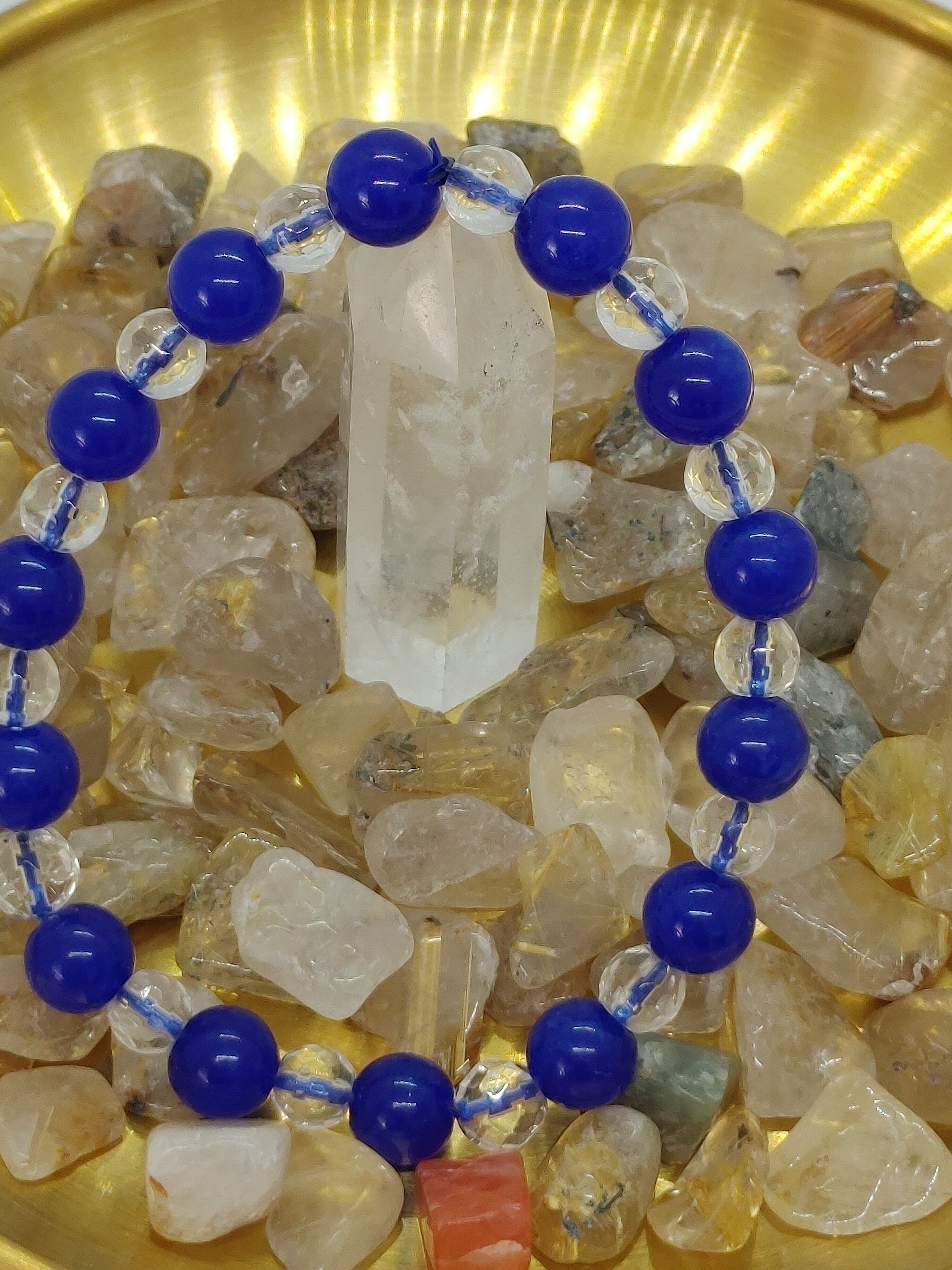 ブルージェイド(翡翠)と水晶で15cmでお作りしています。